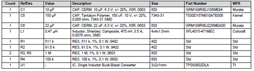 评估模块TPS63802EVM材料清单:
